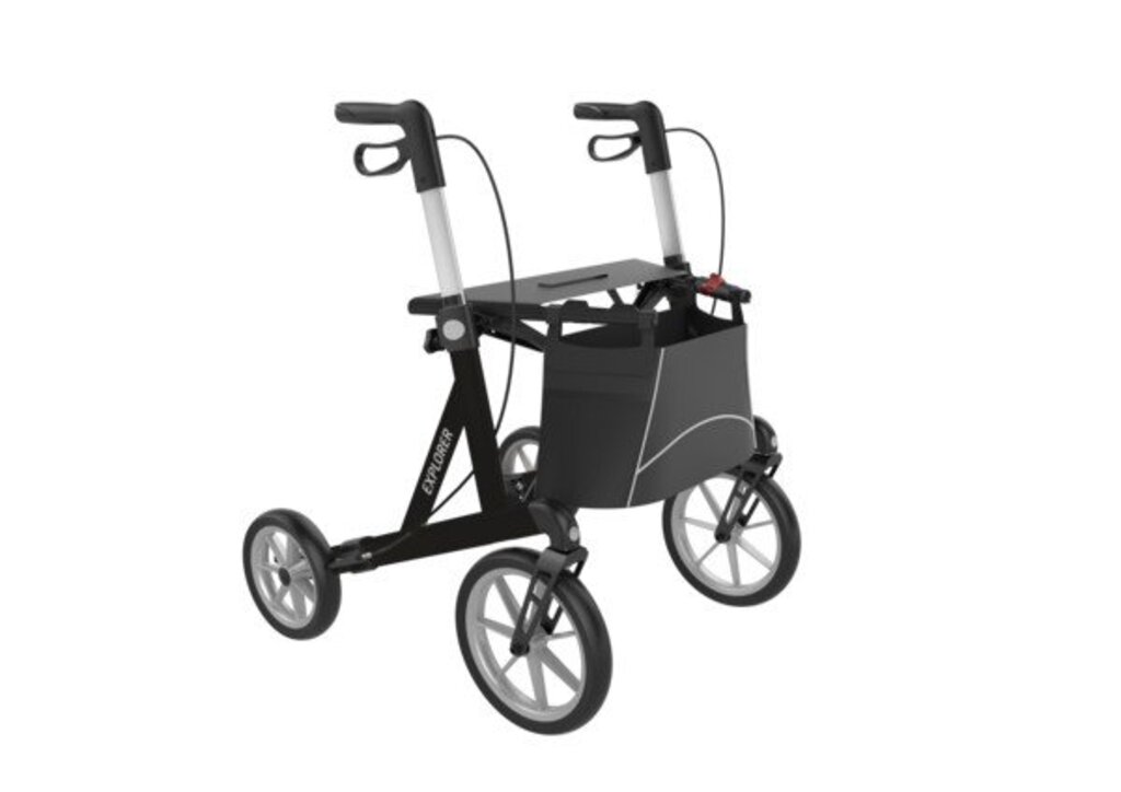 Explorer Rollator Outdoor Rollator De grote outdoor uitvoering binnen de Rehasense rollator serie. Gewicht slechts 9 kg met een breed frame en grote zachte wielen. Stabiel en duurzaam. Frame en zitting zijn getest op een maximale belasting van 200 kg. Lichte en betrouwbare remmen. Zachte PU wielen uit een dubbele laag opgebouwd. Onderhoudsvrij. Het ontwerp van het frame en de speciaal gevormde handgrepen zorgen voor optimaal comfort voor de gebruiker (licht te wenden, kleine draaicirkel en stabiel).